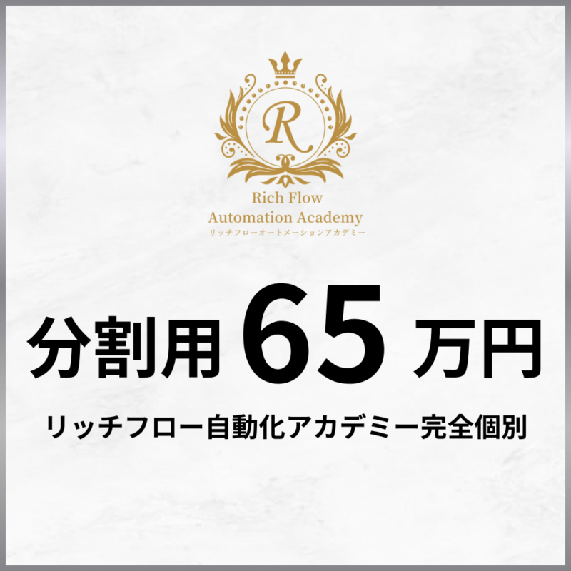 【分割用65万円】リッチフロー自動化ファネルアカデミー 完全個別 お申し込みページ