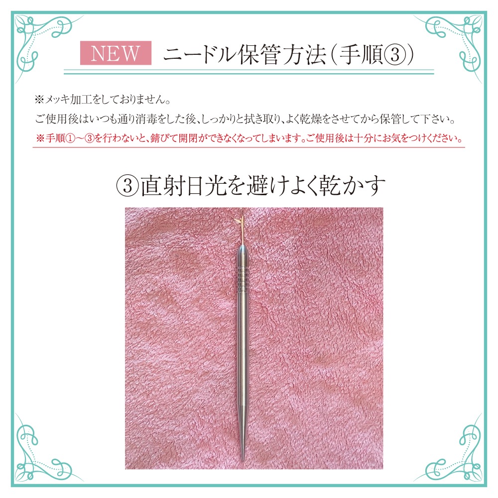 これまで錆びない様にメッキ加工をしておりましたが、細く繊細な先端ですので メッキ加工をすると開閉が難しくなることが多く、